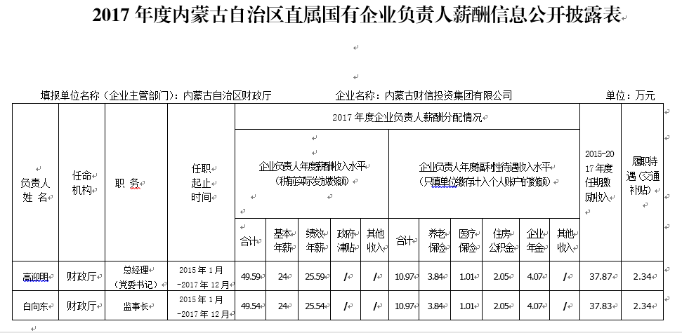 2017年度內(nèi)蒙古自治區(qū)直屬國(guó)有企業(yè)負(fù)責(zé)人薪酬信息公開(kāi)披露表