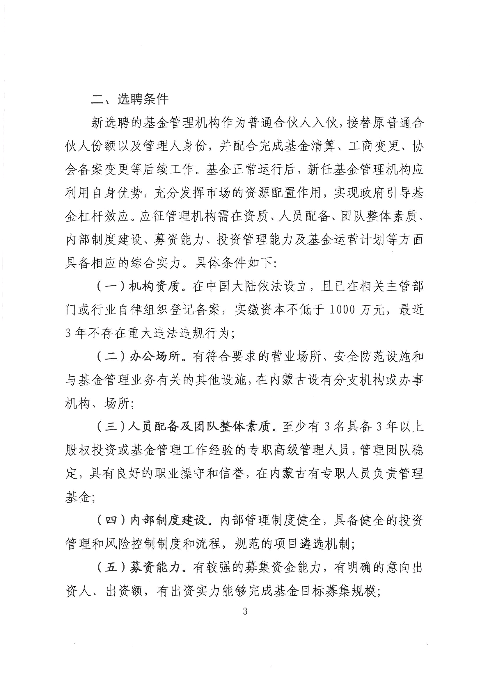 關(guān)于遴選內(nèi)蒙古文化產(chǎn)業(yè)發(fā)展基金管理機(jī)構(gòu)(普通合伙人/執(zhí)行事務(wù)合伙人)的公告